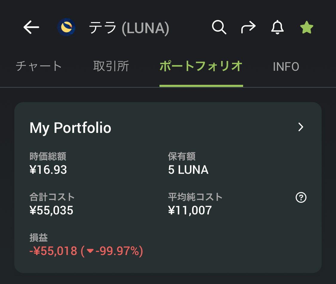 仮想通貨が歴史的な暴落してて ほぼ2日で俺の55035円が16円になりました