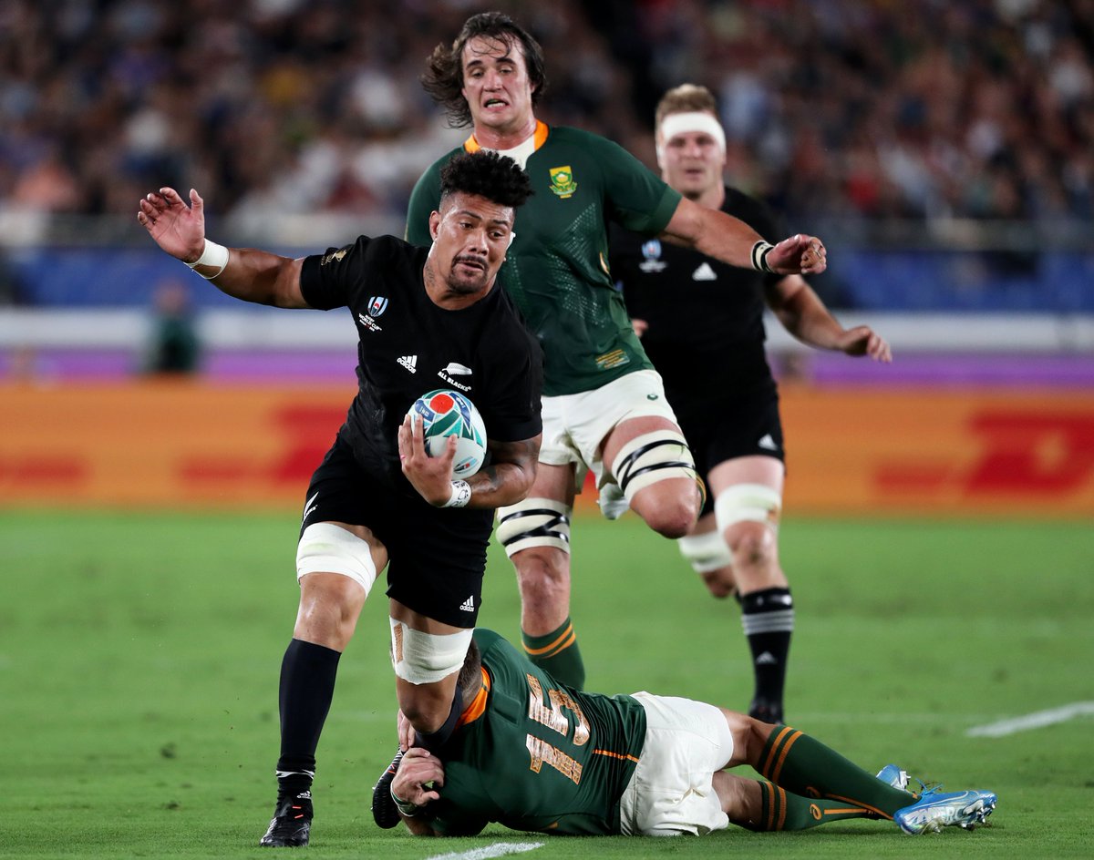 両チームともに前半のタックル数は64回ずつ。ただし、そのうちミスタックルの数はニュージーランド代表が6回、南アフリカ代表が23回と、大きく差があります。 #NZLvRSA #RWC2019 #RWC横浜