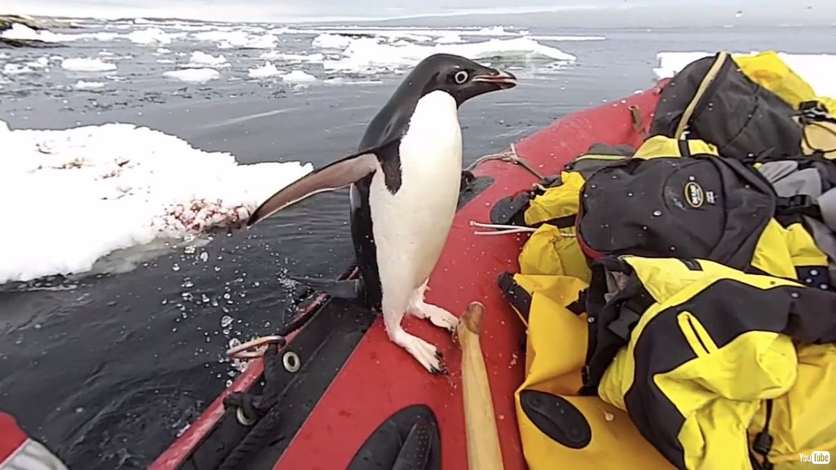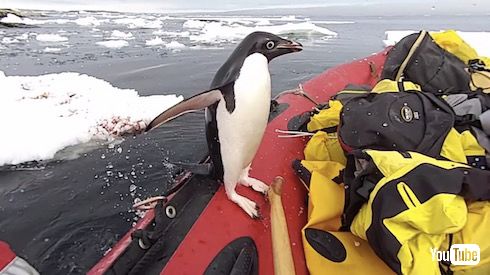 200RT 「あれ? 何か変だぞ…人間だ!」 野生のペンギンさん、うっかり南極観測隊のボートに飛び込んでしまう