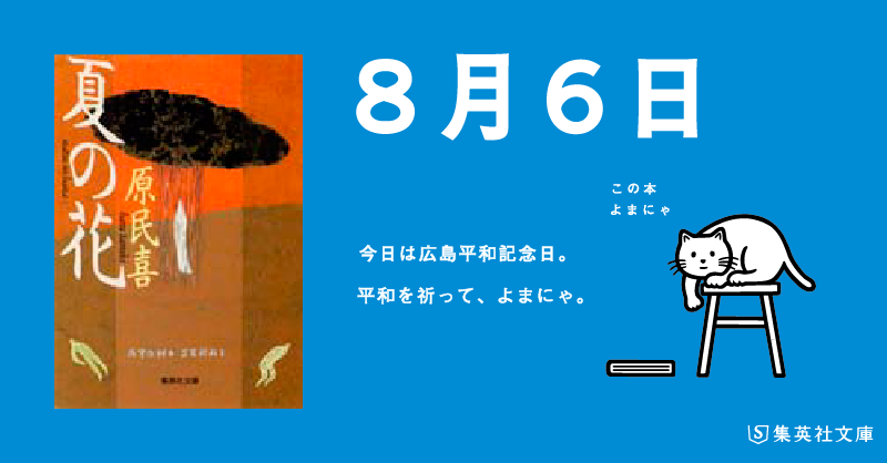【 #日めくりよまにゃ 】 今日は #広島平和記念日。 平和を祈って、よまにゃ。 #原民喜「#夏の花」#よまにゃ #広島 #原爆 #平和