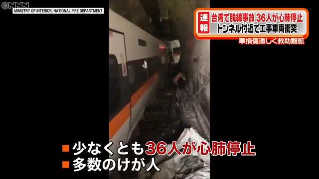 【台湾の脱線事故 心肺停止36人】