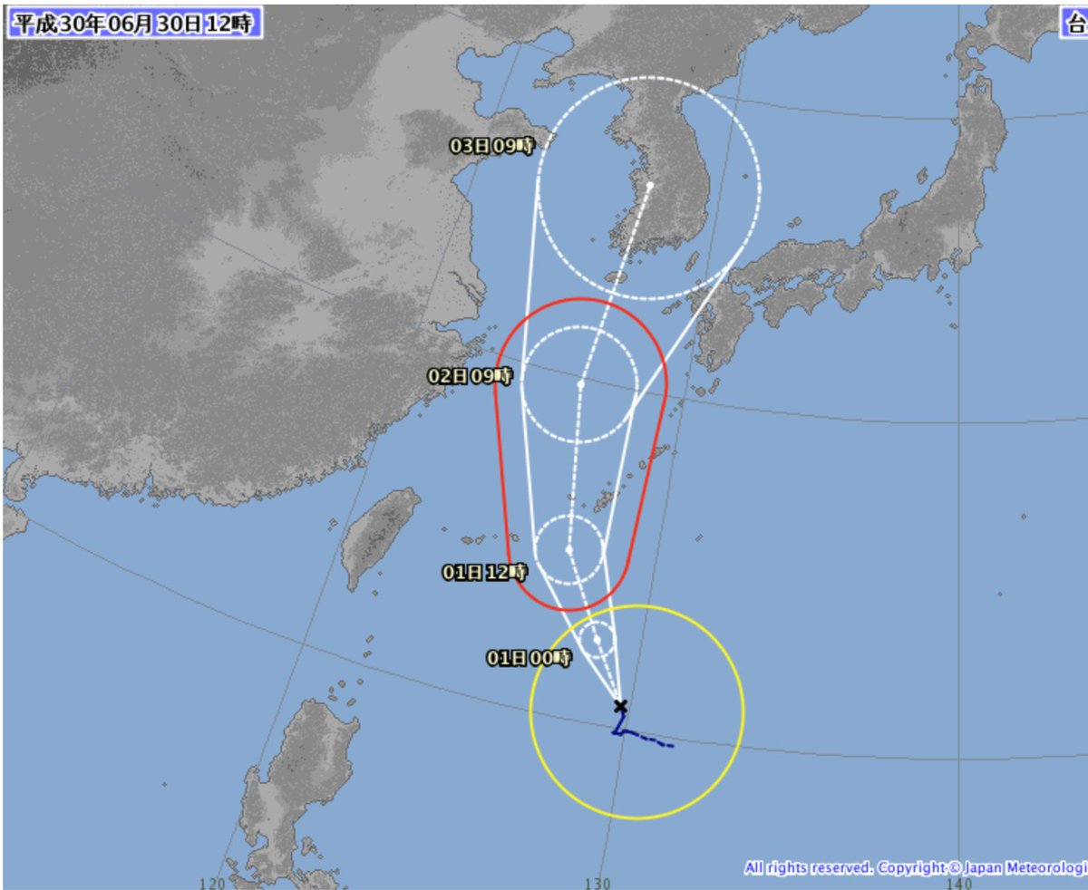 【台風情報】7月1日(日)3時現在、台風7号(プラピルーン)は沖縄の南を北上しています。今夜からあす2日(月)未明にかけて、暴風域を伴って沖縄に最接近する見込みです。大雨や暴風、高波に警戒してください。 #台風 #台風7号…