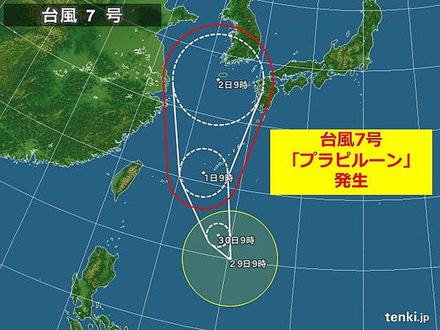 台風第7号プラピルーン発生. タイで「雨の神」という意味の名前です.沖縄方面へ発達しながら北上する見込み.今後の台風情報にご留意ください.