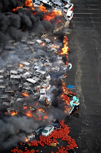 【台風21号】駐車場付近で火災、車100台が炎上 兵庫・西宮