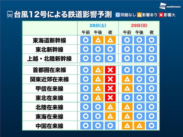 夏休みの週末ですので、お出かけを予定されている方も多いのではないでしょうか? #台風 の進路にあたるところでは、交通機関への影響も出てしまいそうです。台風情報、運行情報を確認の上、安全を最優先に予定の変更も検討していただければと思います。