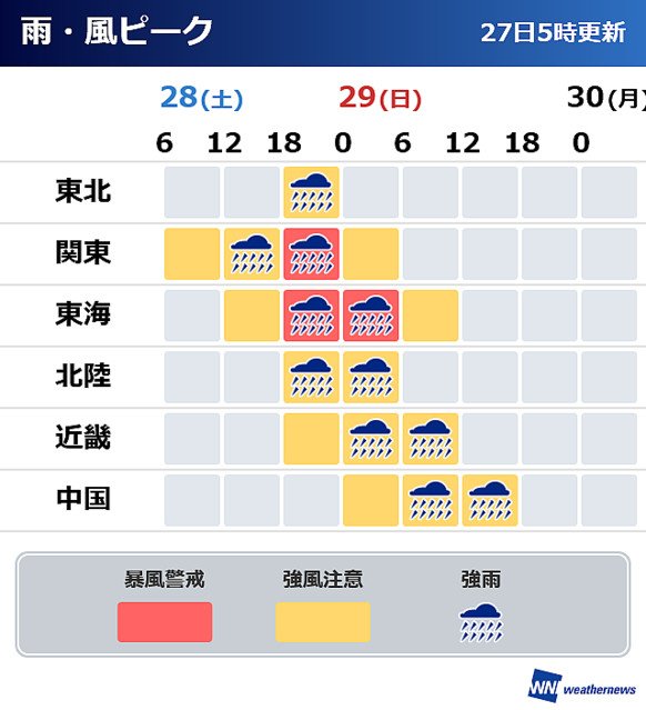 強い勢力の台風12号は、南の海上をさらに発達しながら北上中。昨日よりもコースは南寄りに変化し、28日(土)夕方以降に紀伊半島を中心とした東海地方に暴風域を伴って、接近・上陸する見込みです。 その後、先日の豪雨で被害を受けたエリアに…