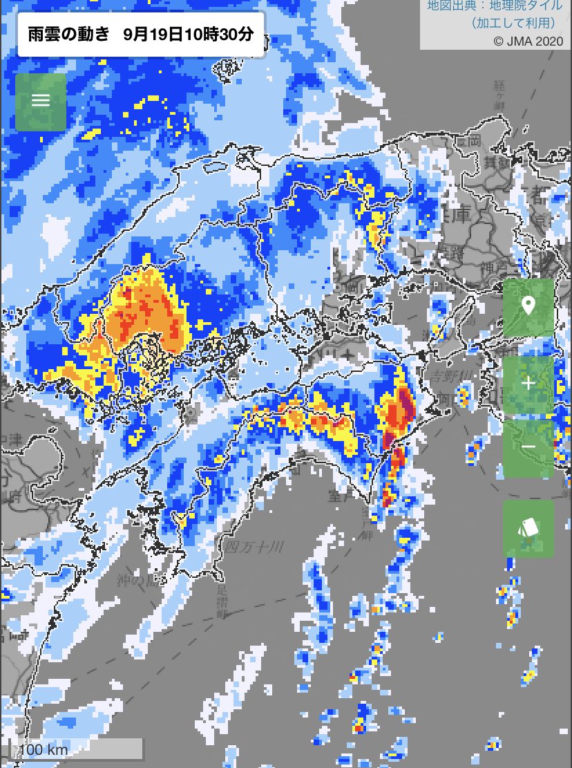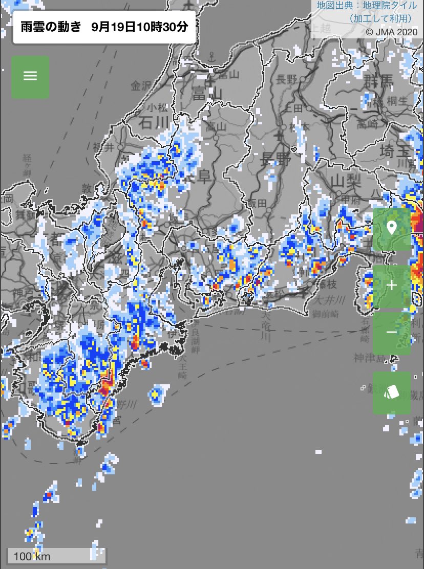 台風14号の影響で暖かく湿った南風が広範囲で吹いており、関東〜四国の太平洋側各地で雨雲が発達しています。大雨にどうかお気をつけください。
