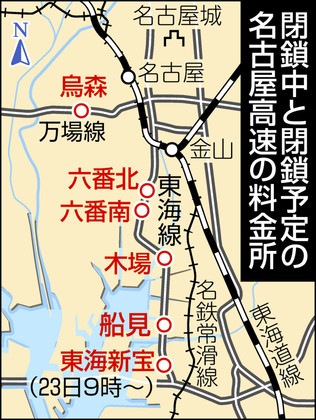 閉鎖中と閉鎖予定の名古屋高速の料金所