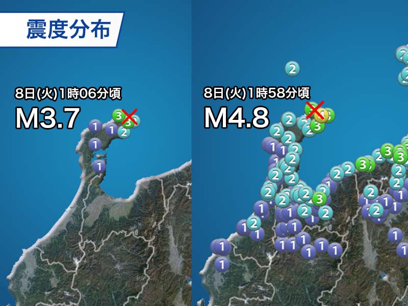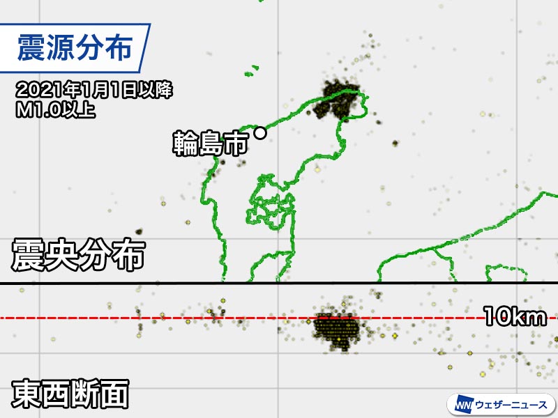 <長期間に渡り地震活動継続> 今日未明に石川県能登半島を震源とする地震が相次いで発生しました。この領域で震度4以上の揺れを観測するのは昨年9月以来です。