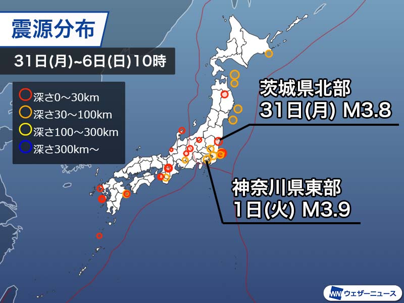 【週刊地震情報】2月1日(火)の早朝に神奈川県東部でM3