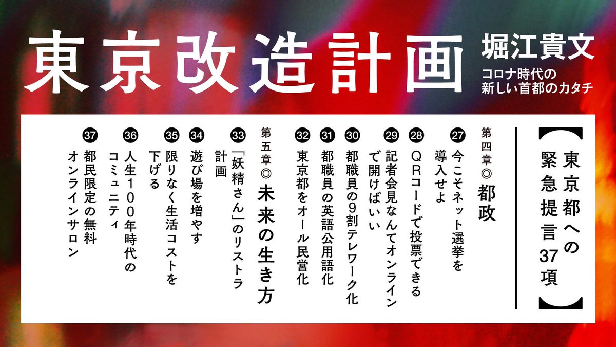 東京都への緊急提言37項。 『東京改造計画』堀江 貴文