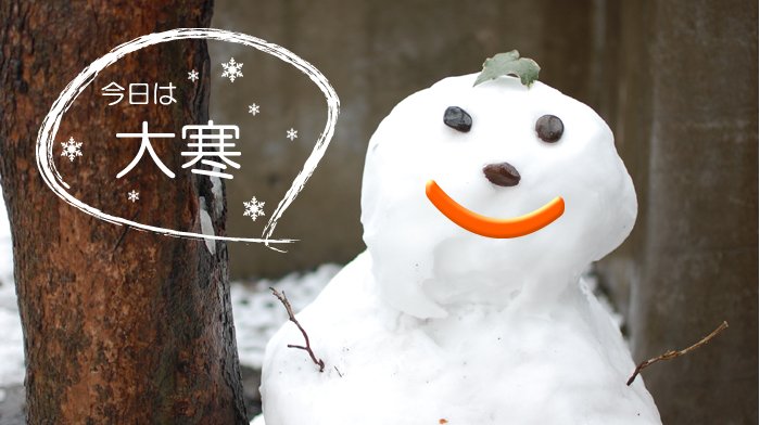 おはよう。今日は大寒よ☆ 1年で一番寒いと言われている日なの。朝起きたらお外が雪一面で、顔がと〜っても冷たいわ。暖かい格好でおでかけしてね☆