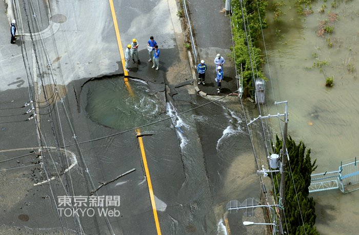 #大阪 の震度6弱の #地震 で、大阪府高槻市内では道路が陥没し、大量の水が周辺に溢れ出しています