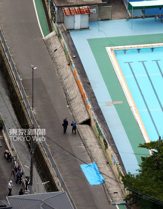 #大阪 の震度6弱の #地震 で、9歳の女児が死亡した大阪府高槻市立寿栄小のプールの壁倒壊現場です。