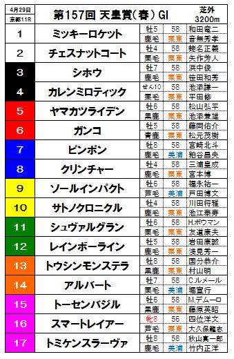 第157回 #天皇賞(春) 枠順確定! #keiba #keiba_radi