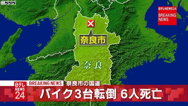 悲惨な交通事故です。奈良市の国道24号でバイク3台が転倒、乗っていた男女6人が死亡、2人が負傷しました。死傷した8人の多くは十代の若者です。