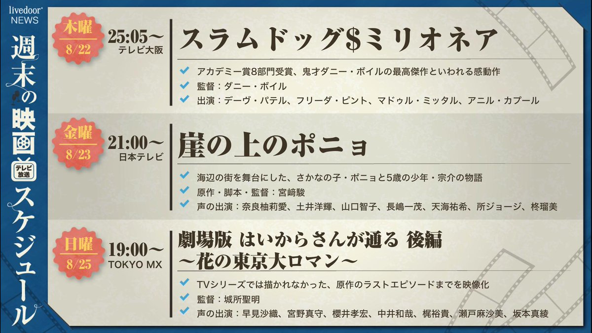 【まとめ】今週の金ローは『崖の上のポニョ』!映画テレビ放送スケジュール 3週連続ジブリの第2夜は『ポニョ』。『はいからさんが通る 後編』は地上波初放送となります(BS11でも同時放送)。