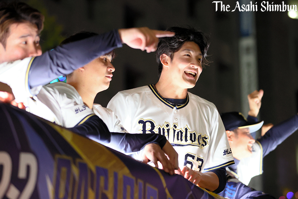 パレードに参加したオリックスの #山崎颯一郎 選手です。(田)#吹田の主婦 #オリックス優勝パレード #御堂筋パレード