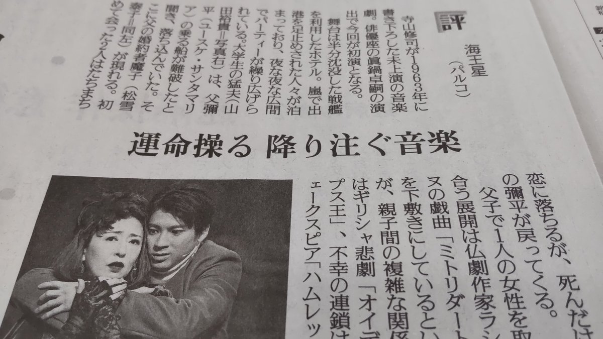 昨夜の #志村けん さん役が素晴らしかった #山田裕貴 さん @00_yuki_Y は舞台でも大活躍! #寺山修司 の未上演音楽劇 『 #海王星 』 本日12