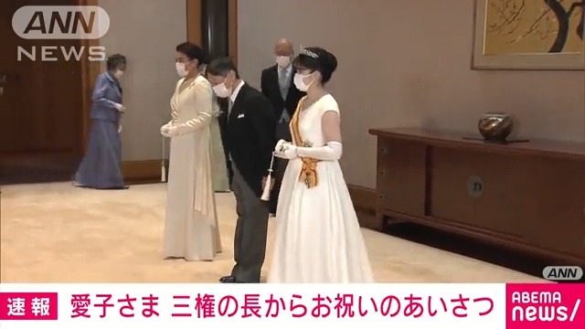 1日に20歳の誕生日を迎え、成年行事に臨まれている天皇、皇后両陛下の長女愛子さま。午後には皇居・宮殿「梅の間」で、岸田文雄首相ら三権の長から祝辞を受けました。 写真特集、追加しています→…