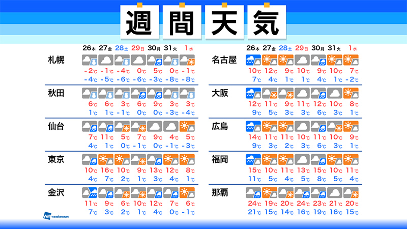【週間天気】この先1週間の天気のポイント ・26日(木)は広範囲で雨や雪 ・大晦日は大雪で交通に影響も ・26日(木)の部分日食は観測厳しい状況に ▼詳しくはこちら▼