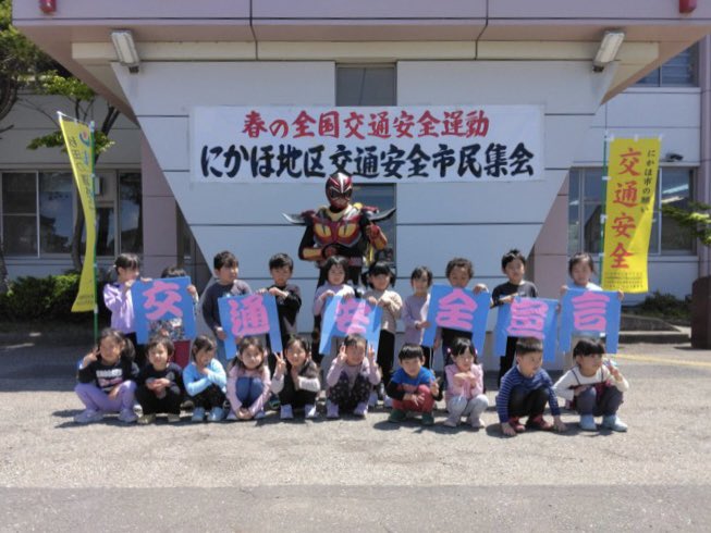 今日から「春の全国交通安全運動」 というわけで 交番で行われた交通安全市民集会で 地区の子どもたちと交通安全宣言な みんな安全に へばな