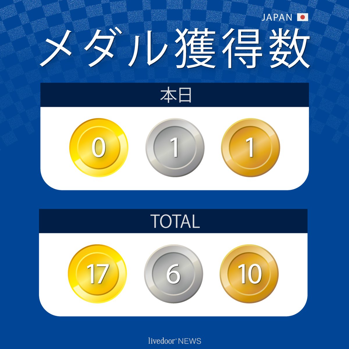 【東京五輪】ここまでの日本選手団のメダル獲得数 今日は、レスリングで文田健一郎選手が銀メダル、体操で村上茉愛選手が銅メダルを獲得! ここまでのメダル総数は33個となっています。 #T