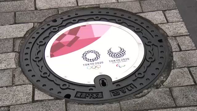 来年の東京オリンピック・パラリンピックの機運を盛り上げようと、東京都が新たに設置する大会エンブレムをデザインしたマンホールのふたが19日、お披露目されました。