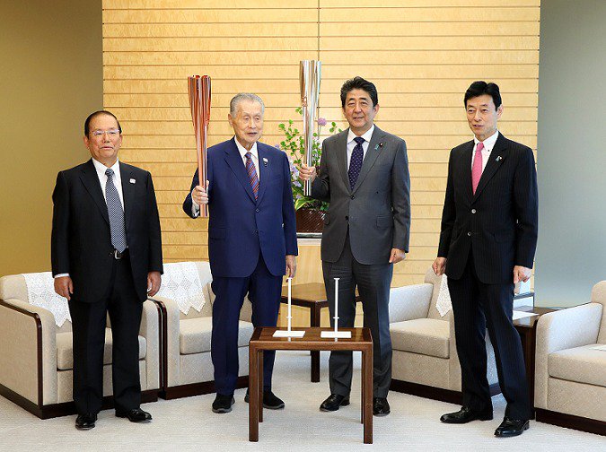 東京オリンピック・パラリンピック競技大会組織委員会の森喜朗会長が安倍総理を表敬。来年の東京2020大会の聖火リレーで使用される、「桜」をモチーフにしたトーチは、素材の一部に東日本大震災の仮設住宅のアルミ建築廃材を再利用。東日本大震…