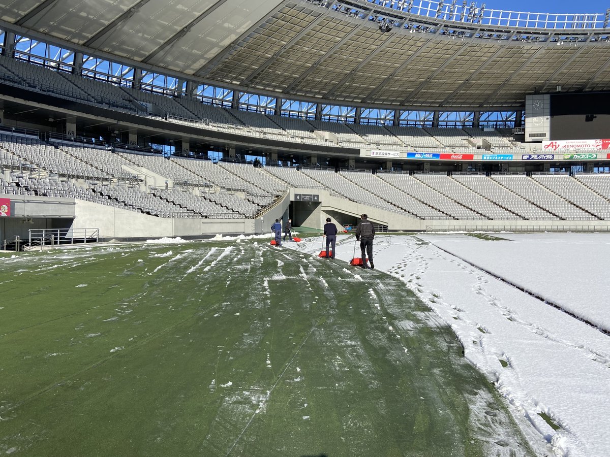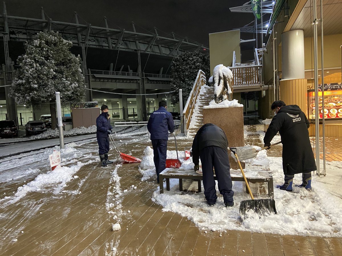 一面銀世界の味の素スタジアムでは、昨日より職員一同、お客様の安全確保とイベントが実施できるよう、雪かきを実施しています。 皆様もお気をつけて、お過ごしください! #味の素スタジアム #味スタ #東京 #雪