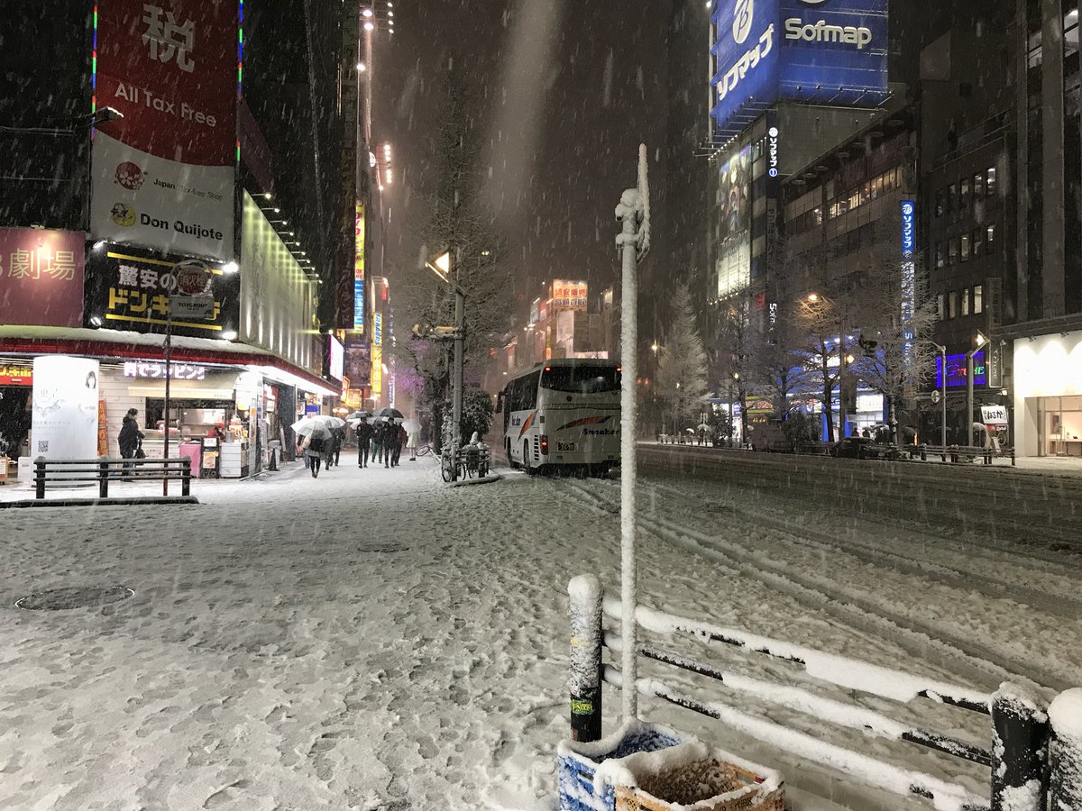 AKB48劇場前。どえらいことになってきた。。皆さん足元ご注意くださいね? #東京 #雪