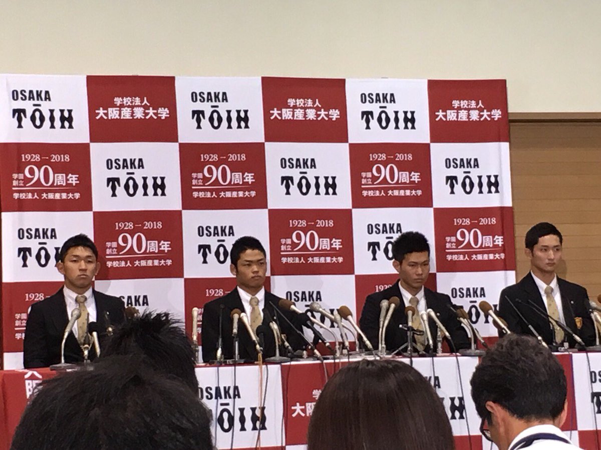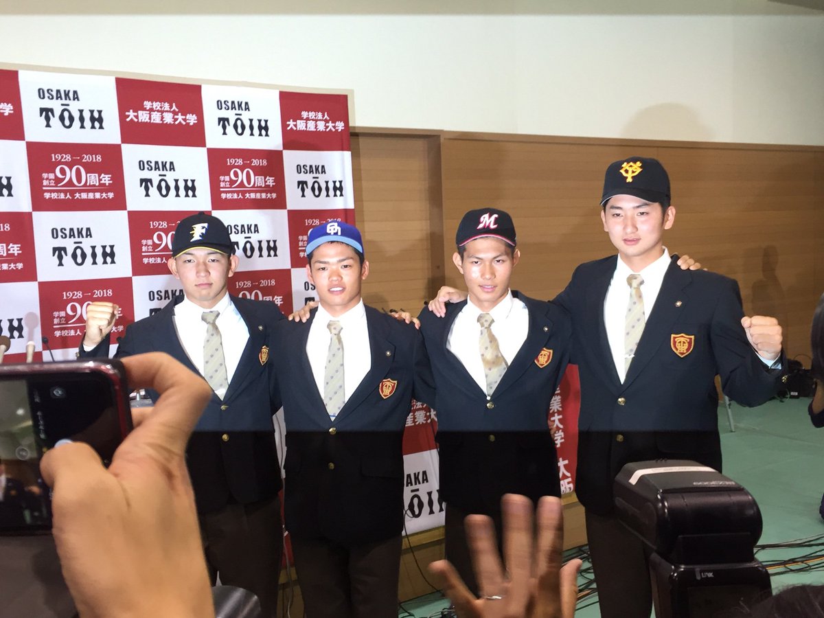 大阪桐蔭はプロ志望届を提出した4人全員が指名され、晴れやかな表情で揃って記念撮影。西谷浩一監督は「全員が指名され、ホッとした気持ち」と語りました。#n