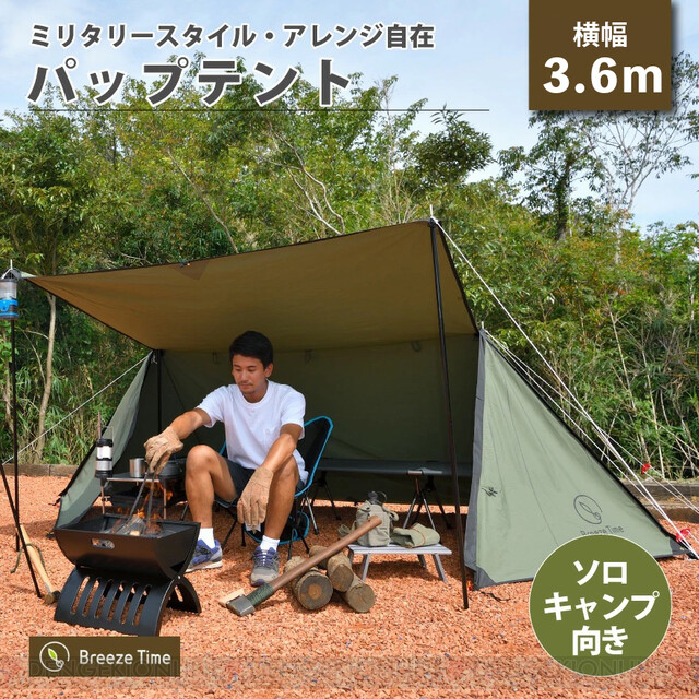 テントにもタープにもなるソロキャン向けミリタリー風のパップシェルターが半額!【楽天スーパーセール】