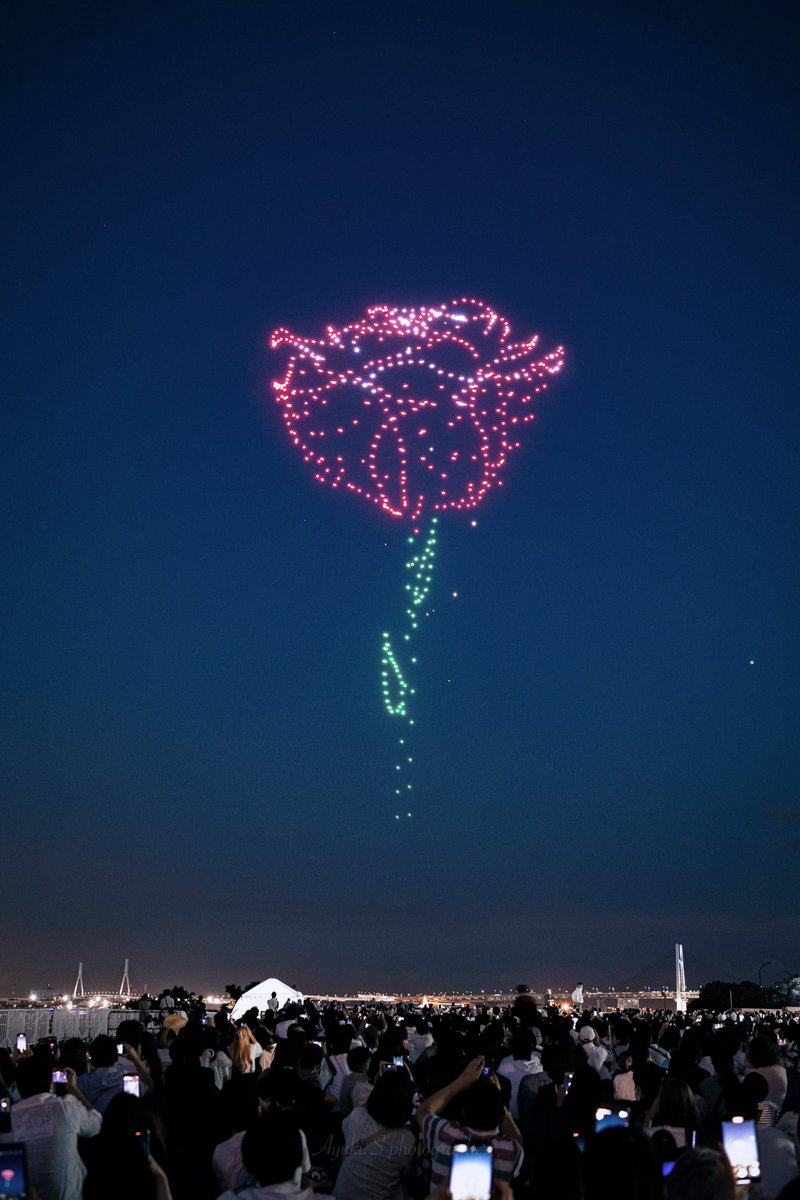 『横浜開港祭』の日に、ドローンで描かれたバラ? 「すごくきれい!」「頑張ったなぁ」 横浜上空に現れた『光るバラ』に感動の声