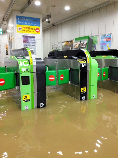 【大雨の影響】JR武蔵小杉駅の自動改札機が水没、横須賀線は駅通過