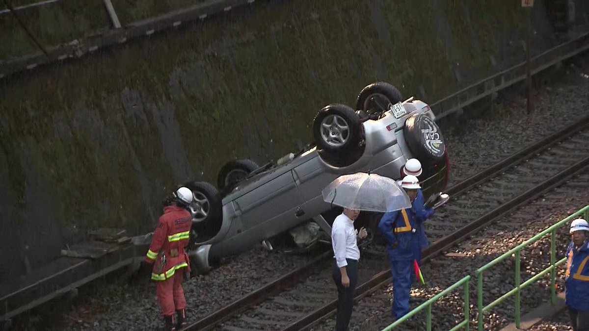 車が線路に転落 武蔵野線、一部区間で運転見合わせ 埼玉・所沢市で、車がフェンスを突き破り、およそ10メートル下の線路に落ちた。