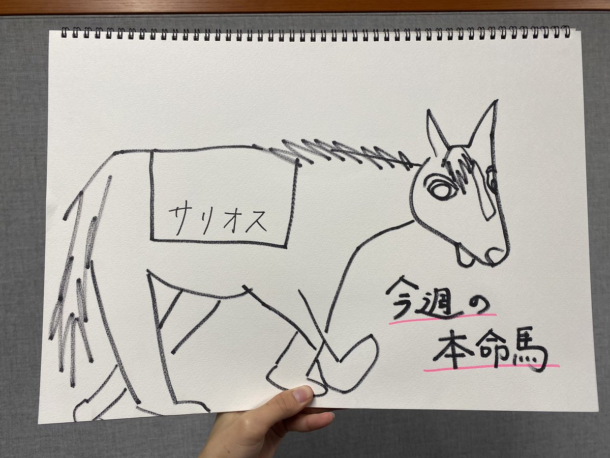 今日19時からは #私を競馬につれてって ?? 今回は毎日王冠の予想をしました! 私の本命馬はこちら! あれ…小塚さんに藤江画伯のイラスト、笑われてる??