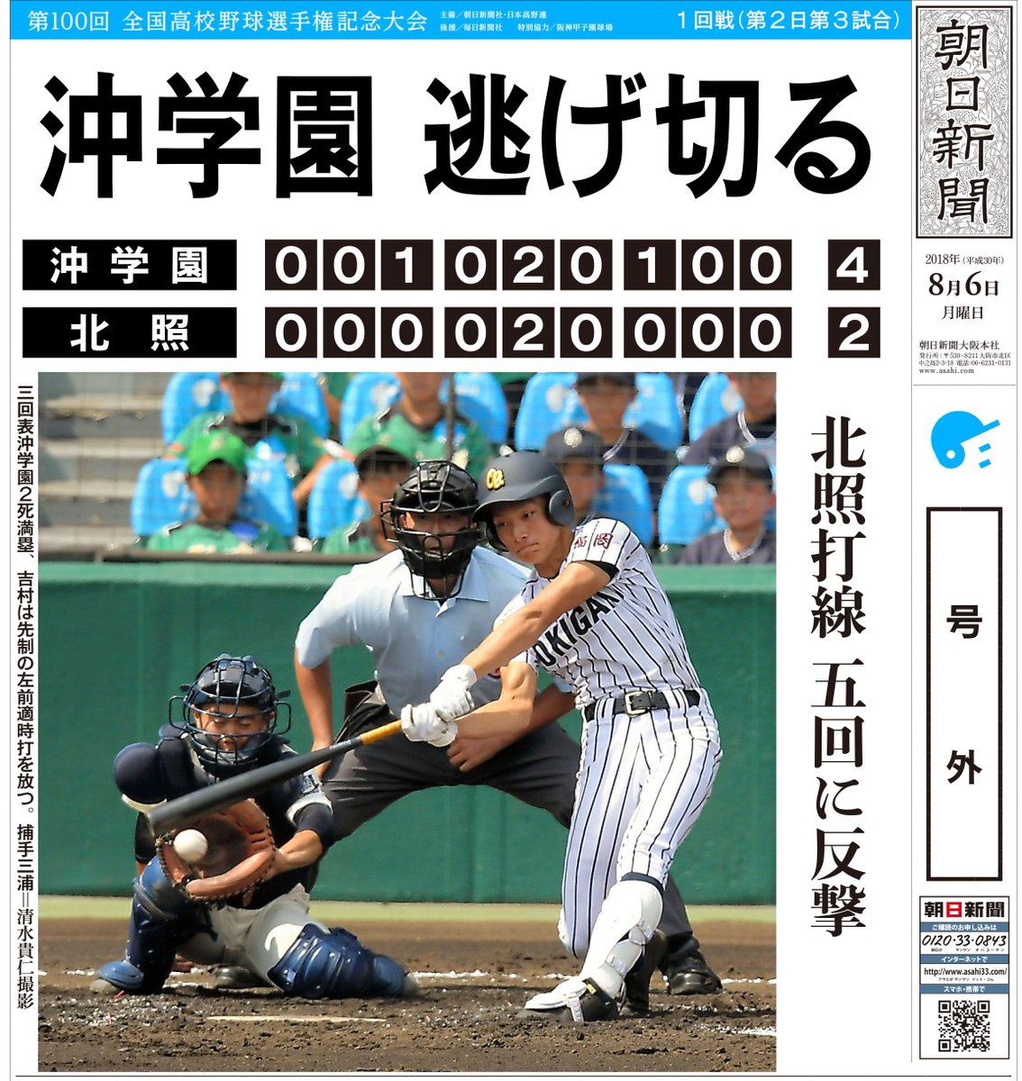 第100回全国高校野球選手権は第2日の6日、甲子園球場で行われ、第3試合の1回戦で5年ぶり4度目出場の北照(南北海道)は初出場の沖学園(南福岡)に2―4で敗れ、夏の初勝利はなりませんでした。…