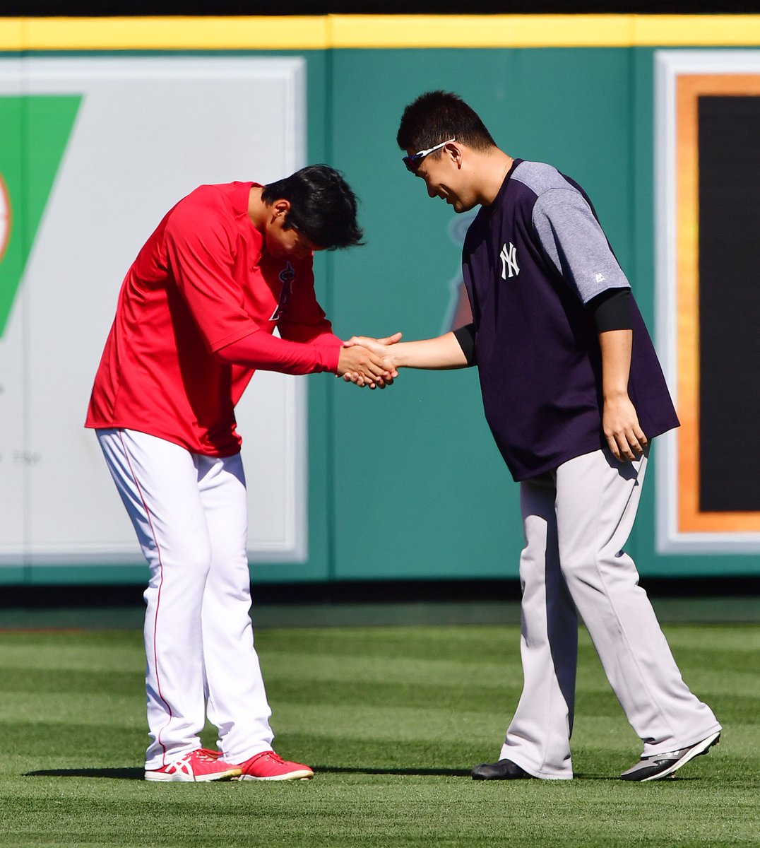大谷「5番DH」でヤンキース戦 マー君と再会握手