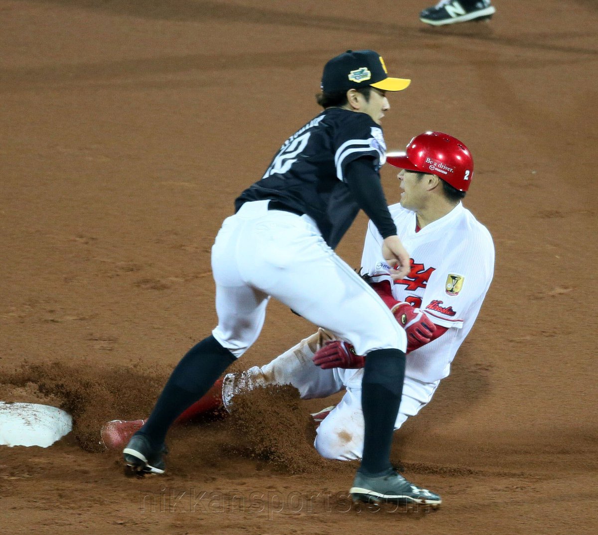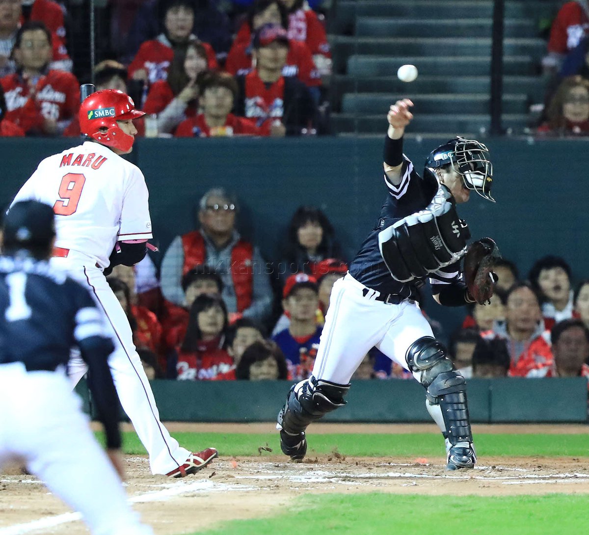 【ビデオ判定の結果アウトになりました】 甲斐キャノンがシリーズ新記録 5連続盗塁阻止 #SMBC日本シリーズ #ソフトバンク #甲斐拓也 #広島カープ スコア速報→