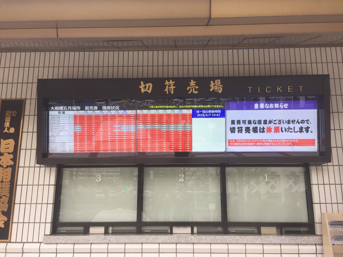 <大相撲五月場所・販売状況>チケット大相撲の予定枚数は終了しました。(チケットの引き取りがなかった場合、再度販売する可能性がございます。)#