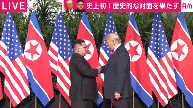 【米朝首脳会談】トランプ大統領と金正恩委員長が握手交わす