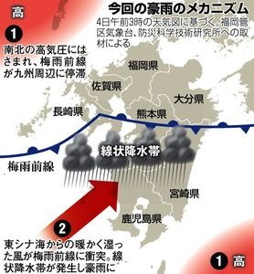 線状降水帯が要因か 熊本県南部の豪雨、強い雨雲横切る | 2020