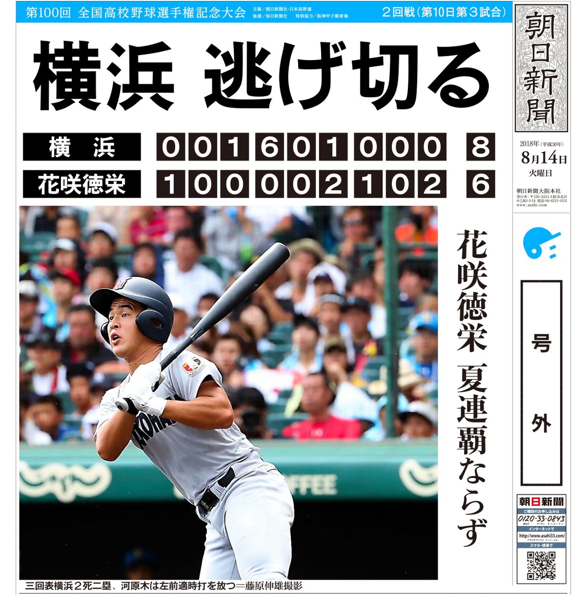 #甲子園:横浜8-6花咲徳栄(終了) 横浜001 601 000=8 花咲100 002 102=6 【花】野村、中田、松井 【横】及川、板川、黒須 【本】野村2ラン、橋本ソロ(花) ※詳細→