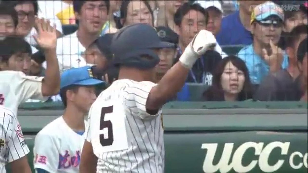 見ました?#花咲徳栄 の9番菅原選手。2球目の抜けたスライダーをよけたつもりが体?ヘルメット?に当たって、審判の方もよく見えてなかったのか、少し判断に迷ってて、「いや、今のは自分から当たったので」みたいな感じで死球を「辞退」。その直後、ホームラン!笑
