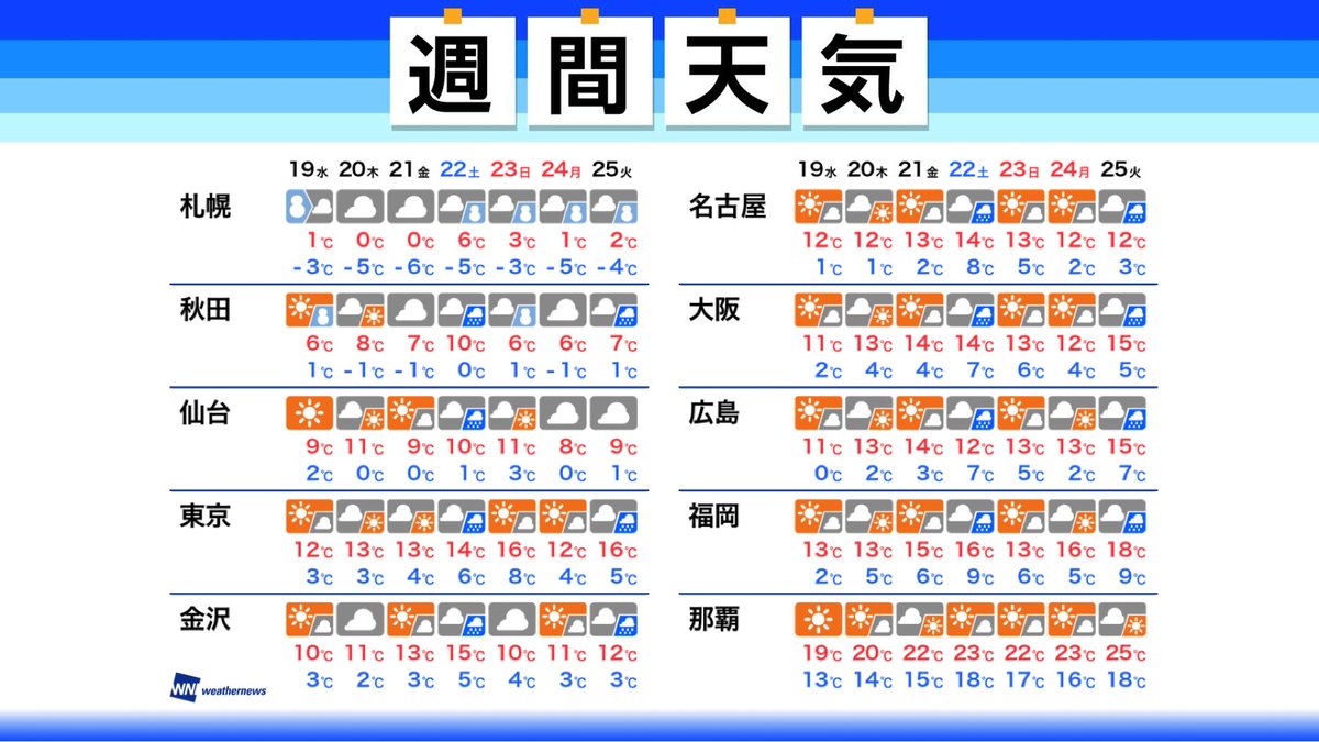 【週間天気】この先1週間の天気のポイント ・気温変化の大きい一週間 ・気温高い日は花粉飛散にご用心 ・次の週末は全国的に雨 ▼詳しくはこちら▼