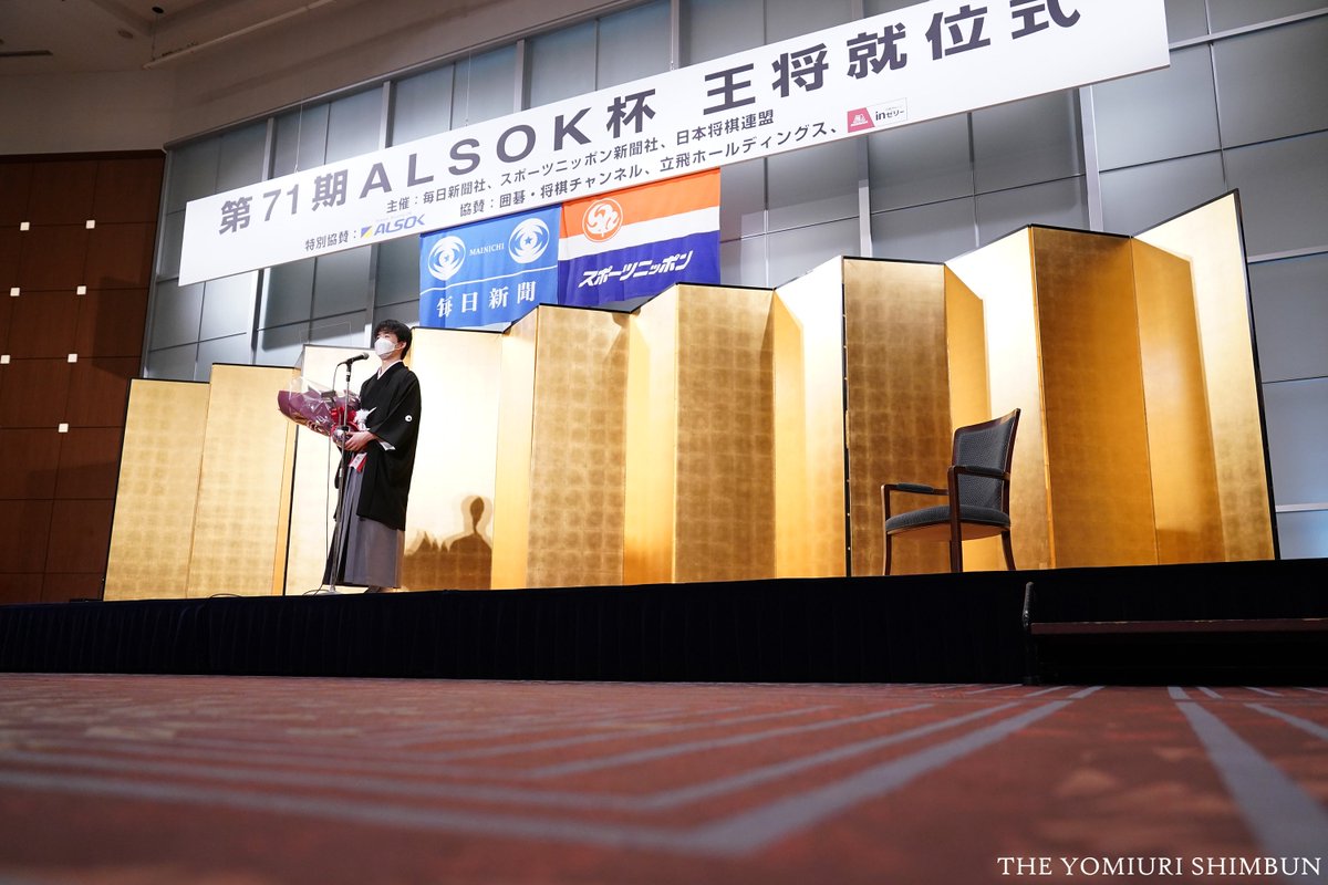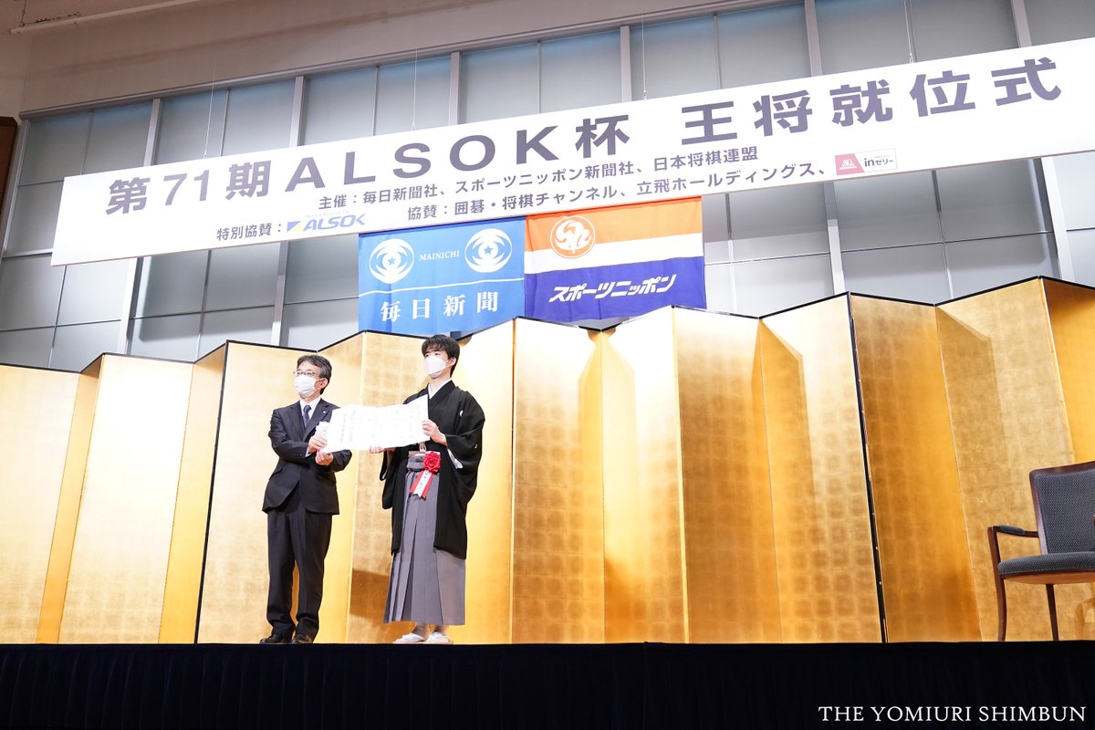 藤井聡太王将が就位式 史上最年少5冠 「4連勝は実力以上の結果」
