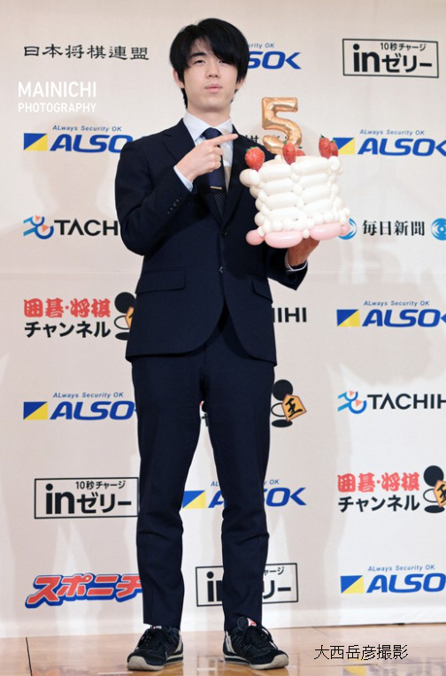 藤井聡太・新王将、一足早くバレンタイン気分満喫 勝者の記念撮影