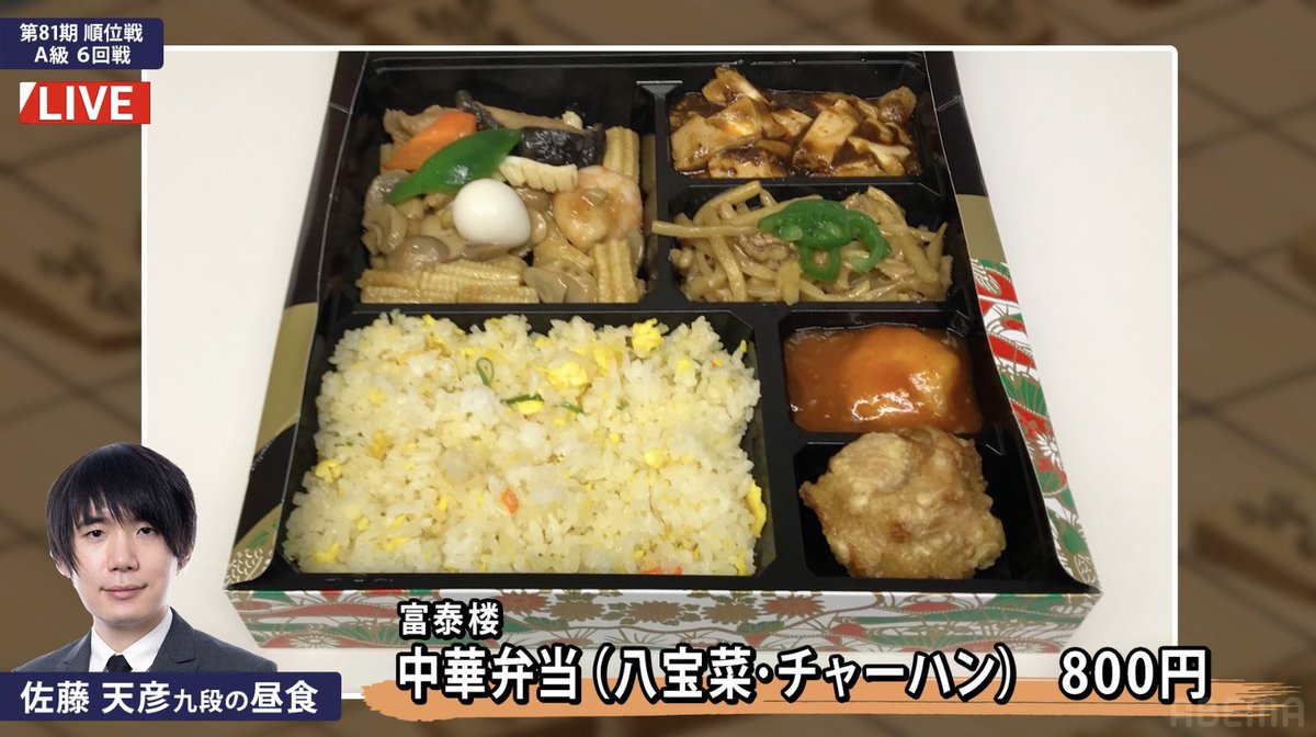 #アベマ将棋 #将棋めし ?ただいま放送中? 第81期 #順位戦 A級 6回戦 ☖#藤井聡太 竜王 ☗#佐藤天彦 九段 「中華弁当(八宝菜・チャーハン)」 視聴は▷