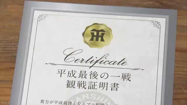 ⚾️平成最後の阪神 対 広島戦で「観戦証明書」が甲子園球場で配られました #平成最後